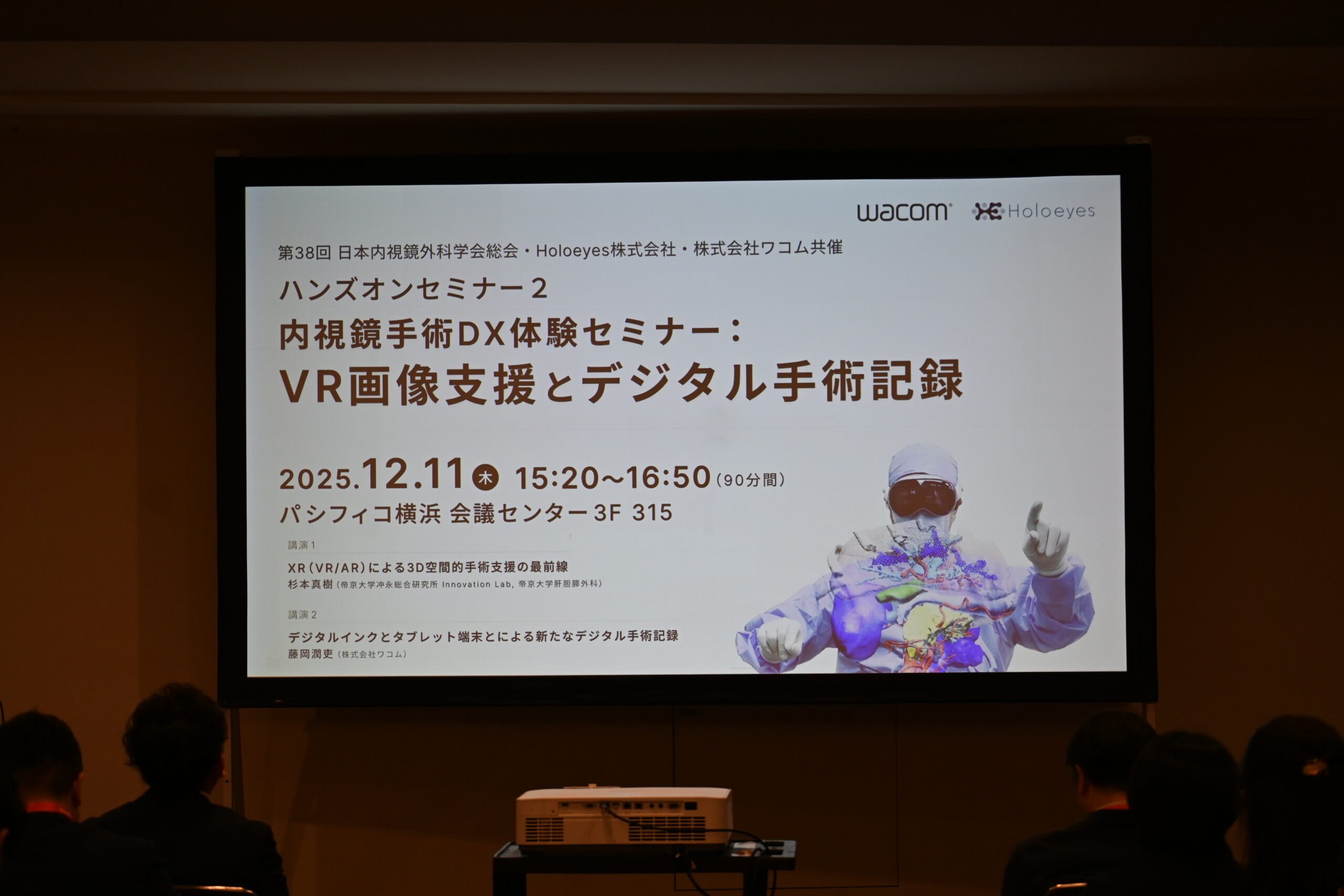 本セミナーでは、VR/XR技術を用いた手術支援を行うHoloeyesと、デジタルインク技術を基盤とするWacomが連携し、手術体験・手術記録・教育を横断的にDXする最新の取り組みが紹介されました。本レポートでは、講演内容とデモ体験を通じて見えてきた「内視鏡手術DXの現在地」を整理します。