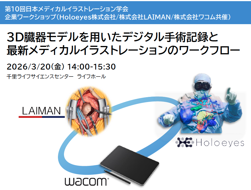 2026年3月20日(金)より千里ライフサイエンスセンターで開催される「第10回日本メディカルイラストレーション学会」において、株式会社LAIMAN、株式会社ワコムとの3社共同で企業ワークショップを開催いたします。